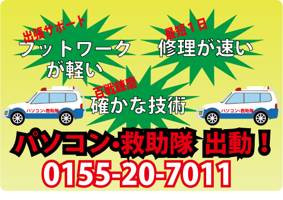「パソコン・救助隊」は十勝帯広のパソコン修理屋です。